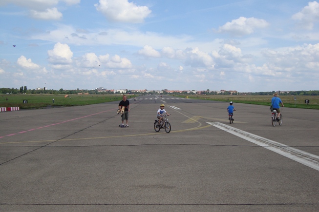 Iemand zei: ‘Je moet naar Tempelhof gaan. Dat is geweldig.’ Ik stapte uit bij metrostation Tempelhof en zocht naar de ingang. Een oude vrouw sprak me aan, ze wilde me op weg helpen. Ze pakte m’n arm vast en gaf een zeer precieze beschrijving, ze herhaalde alles drie keer totdat zij zeker wist dat ik het begrepen had. Dus daar bracht ik m’n laatste middag door, in de zon, in het gras. Een groep frisbeeërs oefende voor het wereldkampioenschap frisbeeën. Kinderen leerden hier fietsen. Er waren heel veel vliegers en soms hing er een skater aan. Ik kwam geen Hollanders tegen en die waren in de rest van Berlijn juist erg aanwezig geweest, ze waren overal, niet alleen van die oversized tienerjongens met Bieber-kapsels (Duitsers en Italianen doen het weer new wave, opgeschoren en een opgeföhnd eiland bovenop), maar ook echtparen op middelbare leeftijd die denken dat niemand ze verstaat als ze met elkaar ruziën en gezinnen die in de Tiergarten een picknickplek zoeken – hier waren ze niet.