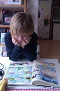 Ik wilde iets anders vertellen: mijn kinderen lezen graag. Mijn zoon van zeven leest nu het liefst strips (Asterix en Obelix en stripboeken van Disney films), mijn dochter van vijf heeft graag sprookjesboeken. Die lees ik haar natuurlijk voor. Hoe kinderen helemaal weg kunnen zijn in een verhaal, dat is het mooiste wat er is. Vind ik, als boekennerd.