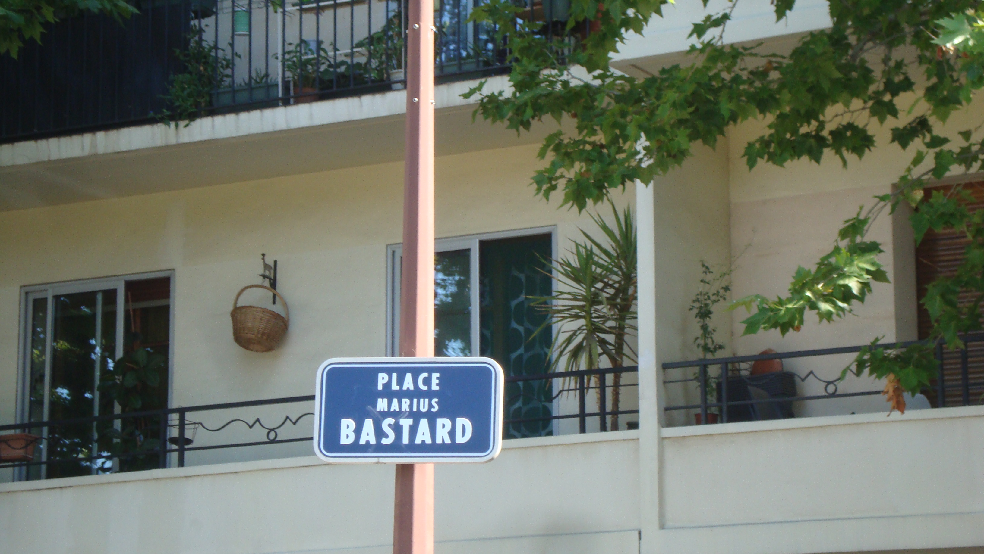Veel toeristen gaan op de foto met dit straatnaambordje in Aix-en-Provence. De bussen vanuit o.a. Marseille stoppen er om de hoek. En het lijkt heel grappig, maar gek is het ook: want ook in het Frans is een bastard een bastard. Maar Marius Bastard was een vrijheidsstrijder in de Tweede Wereldoorlog. Vraag blijft hoe hij aan z’n naam kwam.