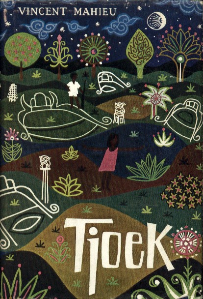Hij keek echt tevreden uit over het wijde veld, waar met de vlinders en libellen mee wat onbestemd en even vrolijk gerucht ronddartelde: geluiden uit de kazerne: koerende houtduiven, zingende soldaten, kinderstemmetjes. Hij keek naar het dubbele gelid van oude ketapangbomen, knoestig en verweerd als bomen van Jules Verne, en hun oude roodgouden bladeren als enorme bloemen. Het waren misschien wel mooie bomen, maar er zaten ook altijd geme