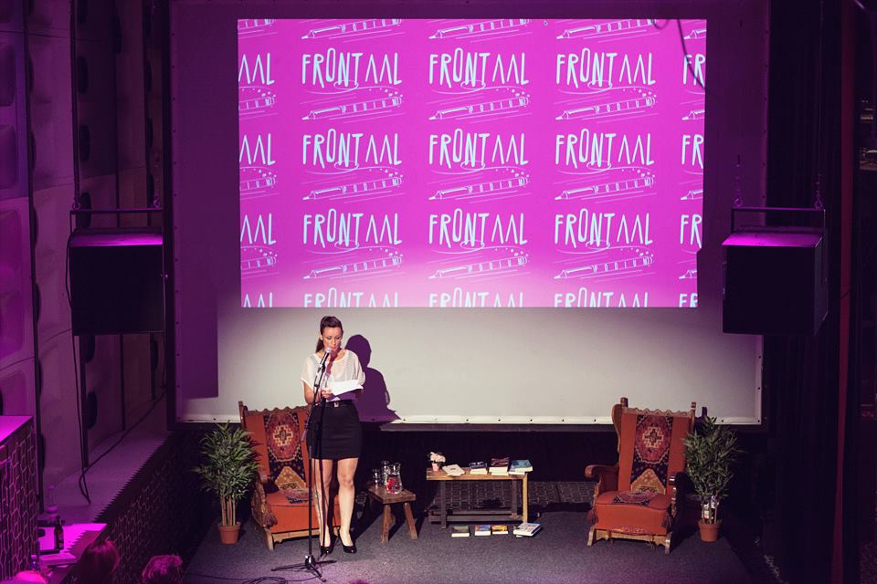 Zondagmiddag las ik bij Frontaal ‘De rode jurk’ voor, een hoofdstuk uit Darko’s lessen, het boek waar ik nu al ruim een jaar uit werk. ‘De rode jurk’ is niet online te lezen, helaas… ik kan zeggen dat het bij de bezoekers van de allereerste en supergave editie van Frontaal wel in de smaak viel. Wat een geweldig publiek!