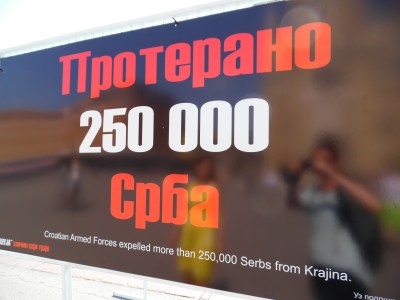 Maar nog veel vaker kwamen tegenwerpingen in deze vorm: ‘Als dat een genocide is, dan is Krajina dat ook!’ Ik moest bekennen dat ik hier niet veel van wist, maar toen ik een dag met Andjela op bezoek was in Novi Sad, kreeg ik het hele verhaal te horen. In Novi Sad, de tweede stad van Servië, was namelijk een tentoonstelling over ’20 jaar na operatie Storm’. Operatie Storm was het laatste staartje van de oorlog waarin Kroatië onafhankelijk werd. In het gebied Krajina werden de Serviërs verdreven. De dodenaantallen gaan volgens de Serviërs over de duizend heen, Kroatië claimt dat het er niet veel meer dan tweehonderd waren, maar zeker is dat zo’n 150.000-200.000 mensen op de vlucht sloegen.
