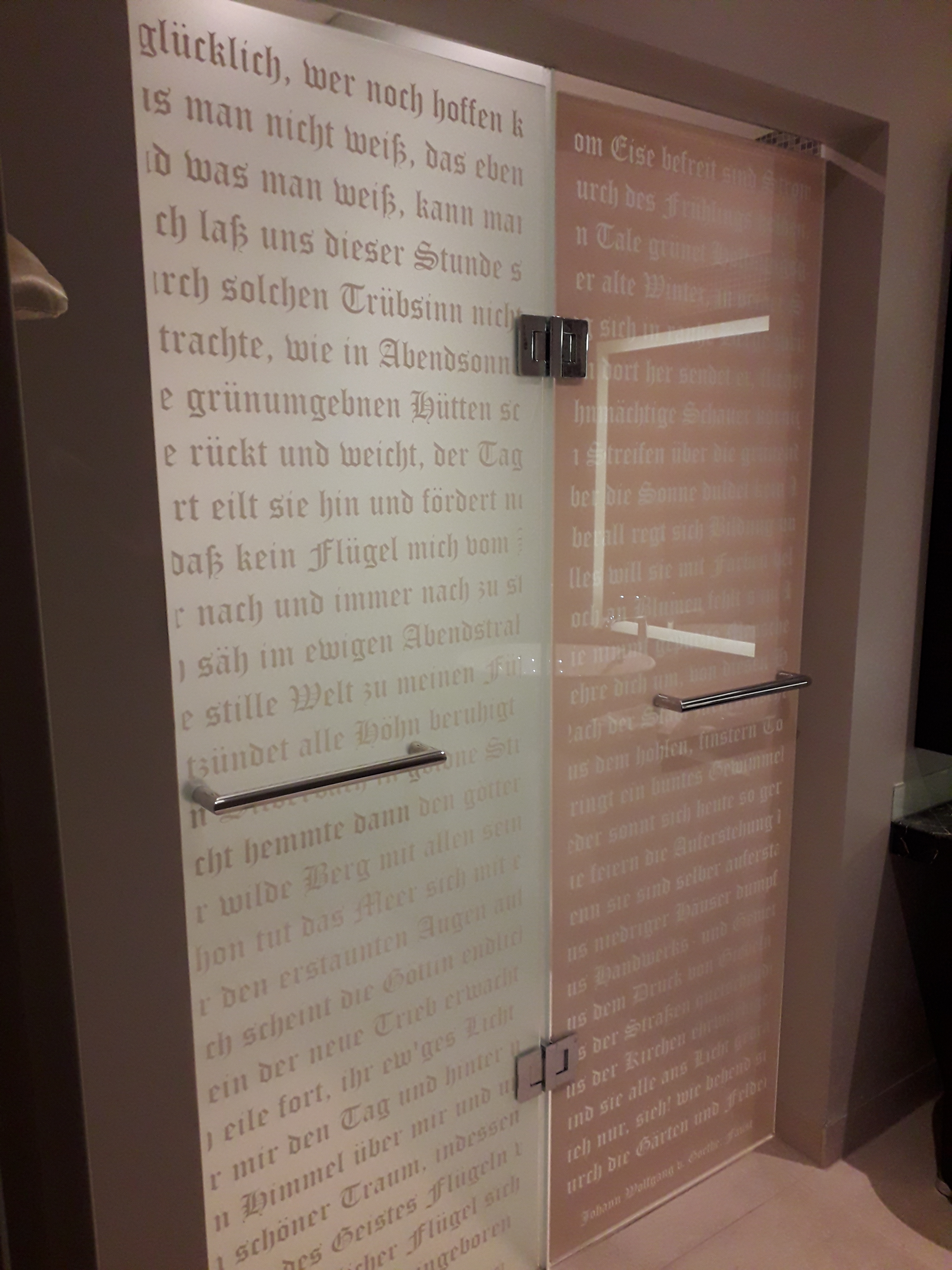 Nee, volgens mij had ik Faust nog nooit gelezen, terwijl het boek waarschijnlijk al sinds mijn studietijd in de kast staat. Maar we sliepen een nacht in Leipzig in een superchic hotel, zo poepchic dat de woorden van Goethe op de wc-deur gedrukt stonden.