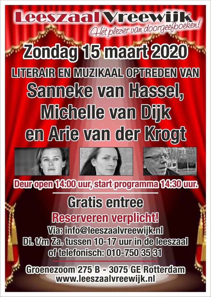 In de boekenweek, op zondag 15 maart, lees ik voor in Leeszaal Vreewijk en het belooft een heerlijk literair en Rotterdams programma te worden: een gevarieerd zondagmiddagprogramma met muziek en werk van drie schrijvers die zich stuk voor stuk laten inspireren door Rotterdam. Een middag vol liefde voor taal en deze weerbarstige stad.