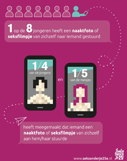 - 1 op de 8 jongeren heeft wel eens sexy beelden van zichzelf naar iemand hebben gestuurd, volgens het onderzoek. In Nederland zijn er 2,7 miljoen jongeren in de leeftijd van 12 tot 25 jaar. Reken om hoeveel jongeren een ‘sext’ hebben gestuurd.