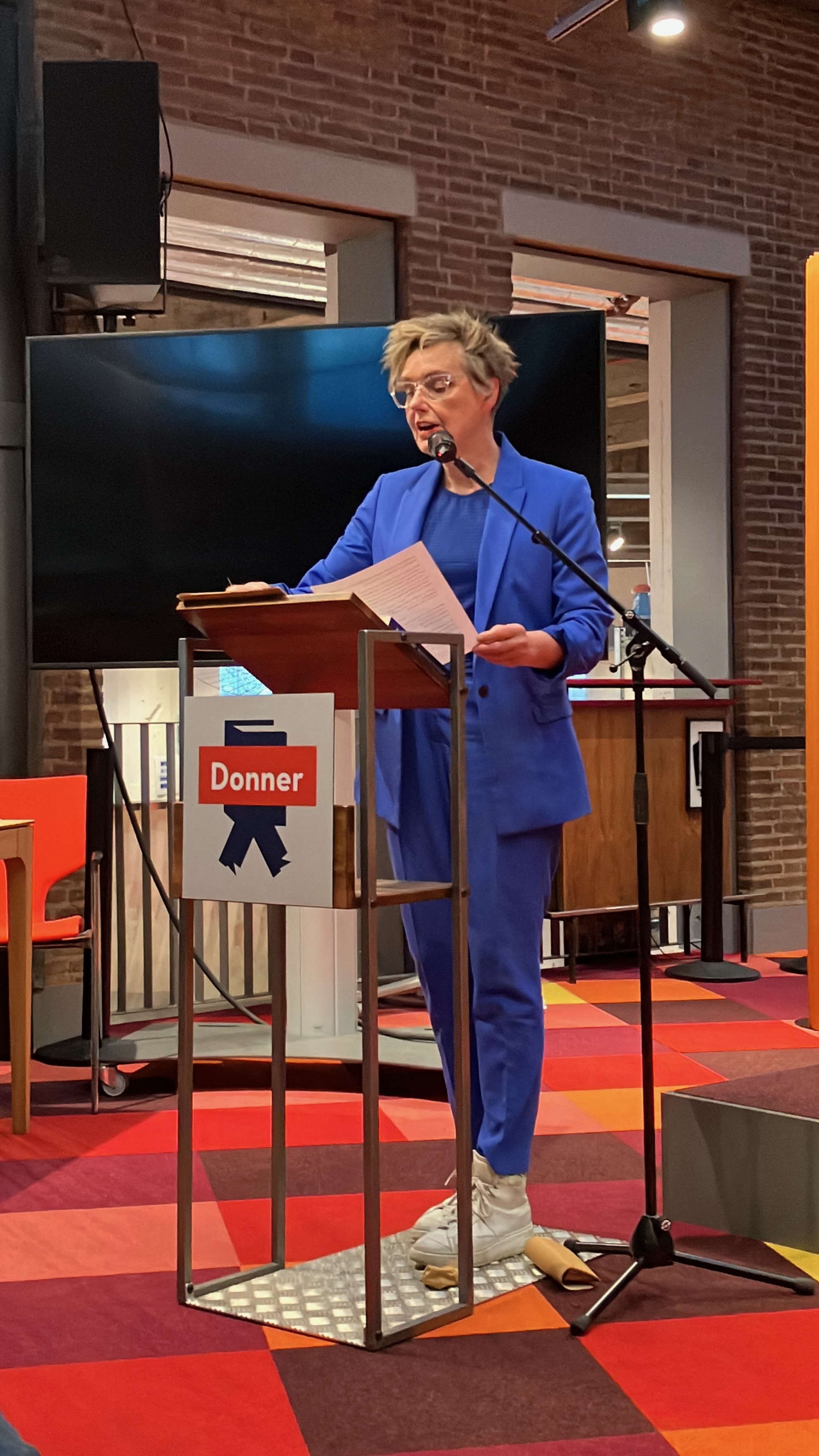 Op vrijdag 18 april werd het eerste exemplaar van Kijk niet om! aangeboden aan Anne Vegter. Zij sprak lovende woorden over het boek: